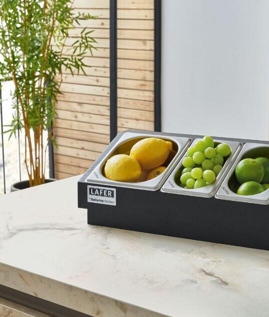 Η εργονομία ενισχύεται μέσω της τροχήλατης, αποσπώμενης επιφάνειας εργασίας, προσφέροντας άμεση πρόσβαση σε μπαχαρικά και σκεύη τόσο κατά το μαγείρεμα όσο και κατά το σερβίρισμα.