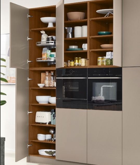 Στα ψηλά ερμάρια, ο περιστρεφόμενος μηχανισμός TURNMOTION εξασφαλίζει εύκολη και άμεση πρόσβαση στο περιεχόμενο, βελτιώνοντας την εργονομία της σύνθεσης.