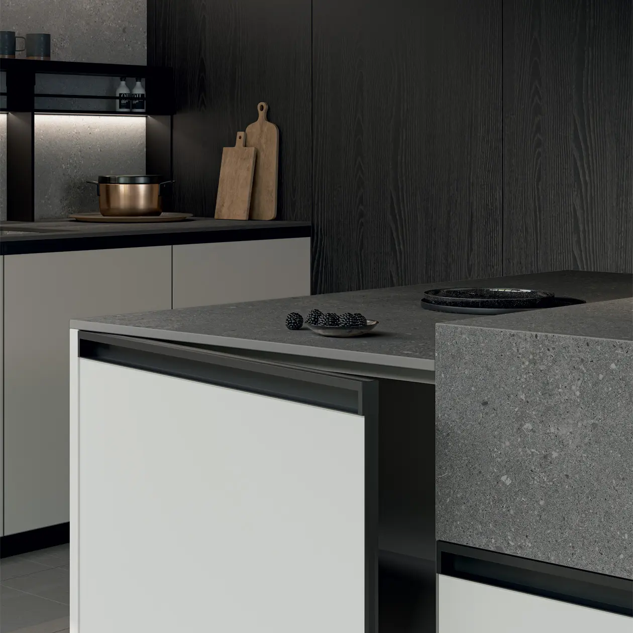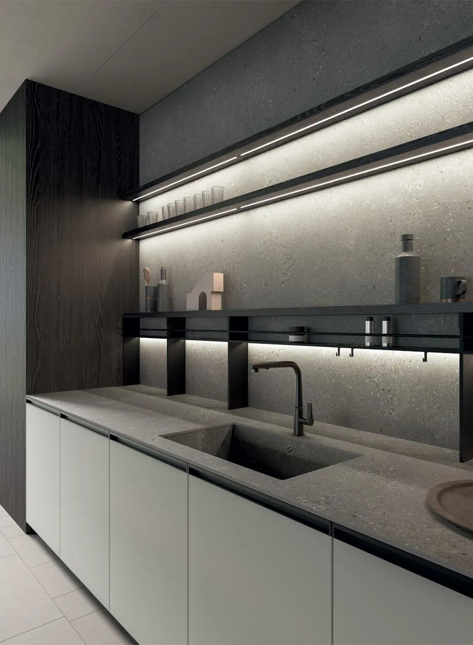 Η Glass 2.0 έχει σχεδιαστεί για να προσφέρει απόλυτη πρακτικότητα χωρίς να θυσιάζει την αισθητική. Ο ελαφρύς αλλά στιβαρός αλουμινένιος σκελετός και οι επιφάνειες από ανθεκτικά υλικά εξασφαλίζουν διάρκεια και ευκολία στη χρήση. Οι ενσωματωμένες λαβές και τα slim προφίλ επιτρέπουν εργονομία και ευκολία κινήσεων, καθιστώντας τα έπιπλα κουζίνας λειτουργικά και κομψά ταυτόχρονα.